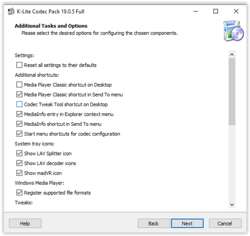 يتضمن البرنامج مجموعة أدوات فعّالة لتحسين تجربة تشغيل الصوت والفيديو، مثل Media Player Classic Home Cinema (MPC-HC). يوفر البرنامج إمكانيات رائعة لمشغل الوسائط . كما تتيح أداة Codec Tweak إمكانية تهيئة التطبيق.